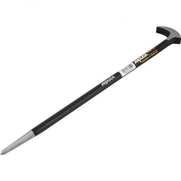 Possui acabamento oxidado preto, proporcionando resistência contra a corrosão, e ponta redonda cônica, que facilita o encaixe em locais apertados nos trabalhos de movimentação de caixas e peças pesadas. Conta também com ponta tipo unha, facilitando a alavancagem de caixas e peças pesadas.