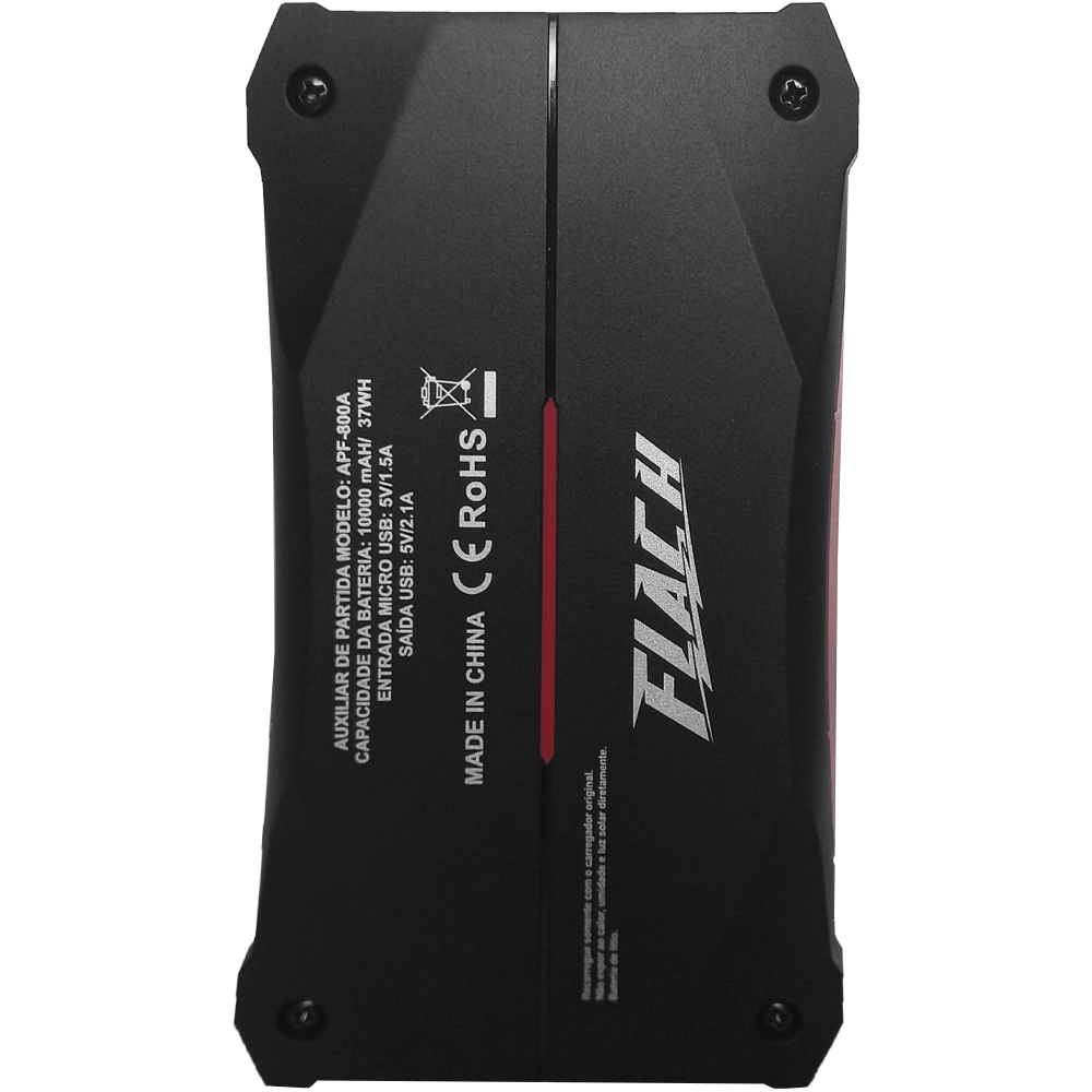Equipado com uma bateria interna de 10.000mAh / 37Wh, o Auxiliar de Partida Portátil 12V 800A Flach fornece energia confiável para iniciar o veículo sem depender de uma fonte externa. A recarga do dispositivo é fácil e conveniente, feita via USB com uma entrada de 5V/1,5A.