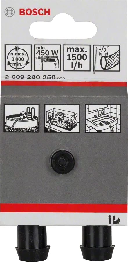 A bomba de água universal para furadeiras Bosch é ideal para uso com parafusadeiras, furadeiras e chaves de impacto. É uma solução prática e versátil para diversas aplicações de bombeamento.