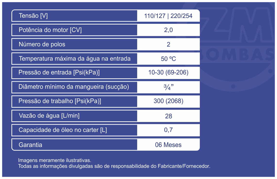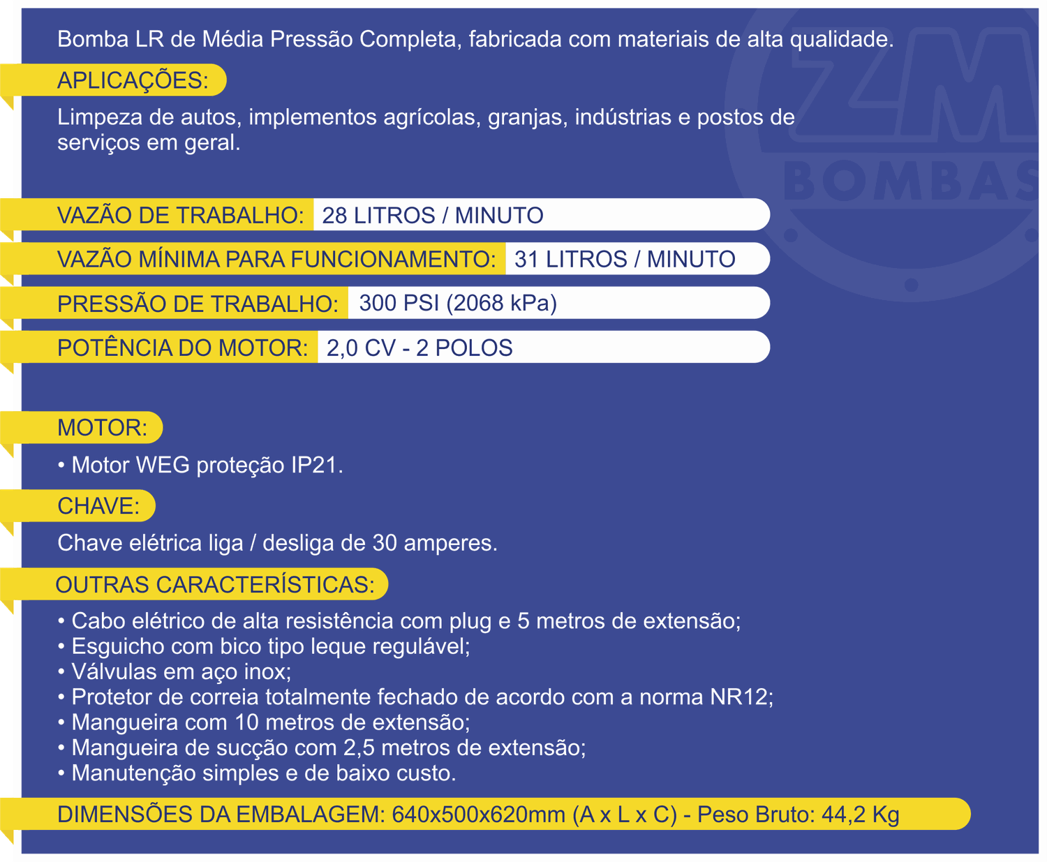 Bomba Lava Auto ZM LR28/2 2 CV Motor WEG 220V