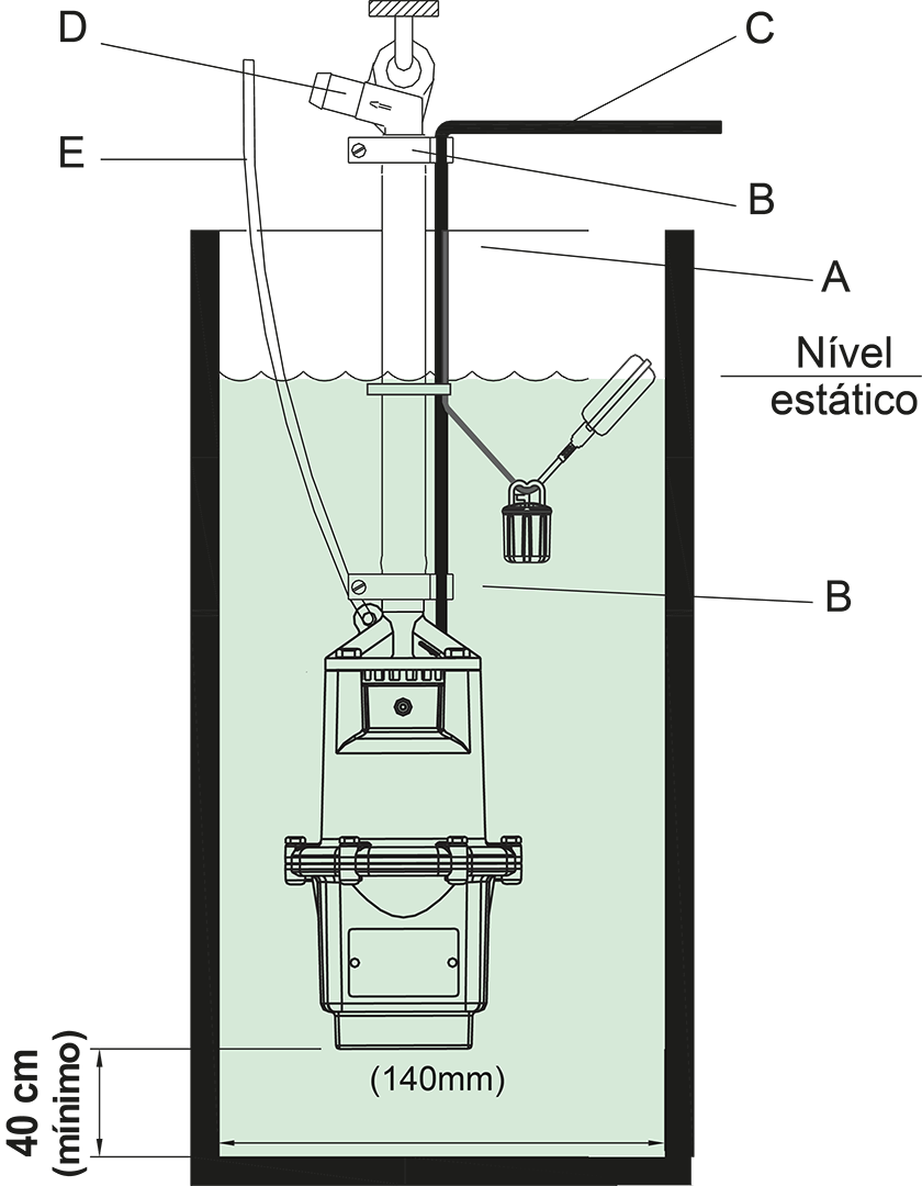 Indicada para bombeamento de água limpa, sem resíduos sólidos