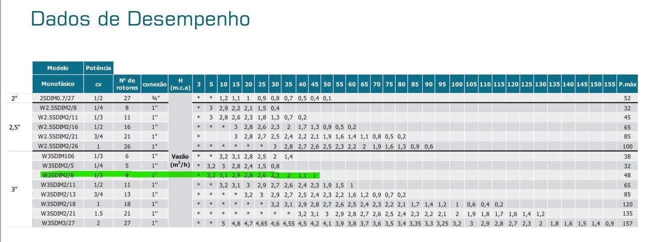 Bomba Submersa W3SDIM2/08 1/3 CV 220v Claw