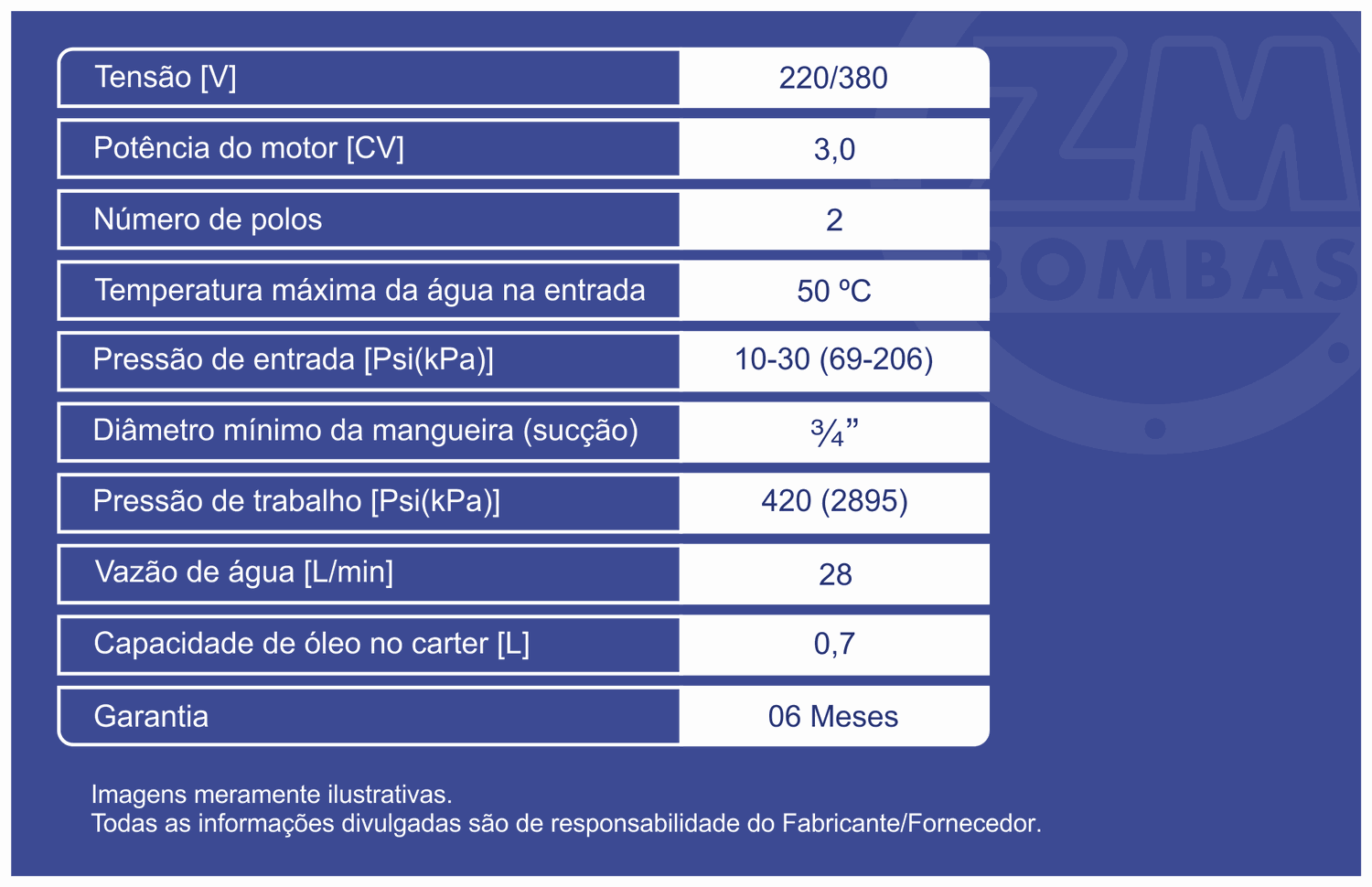 Bomba ZM LR-28/3 Completa Trif Motor WEG 220/380V