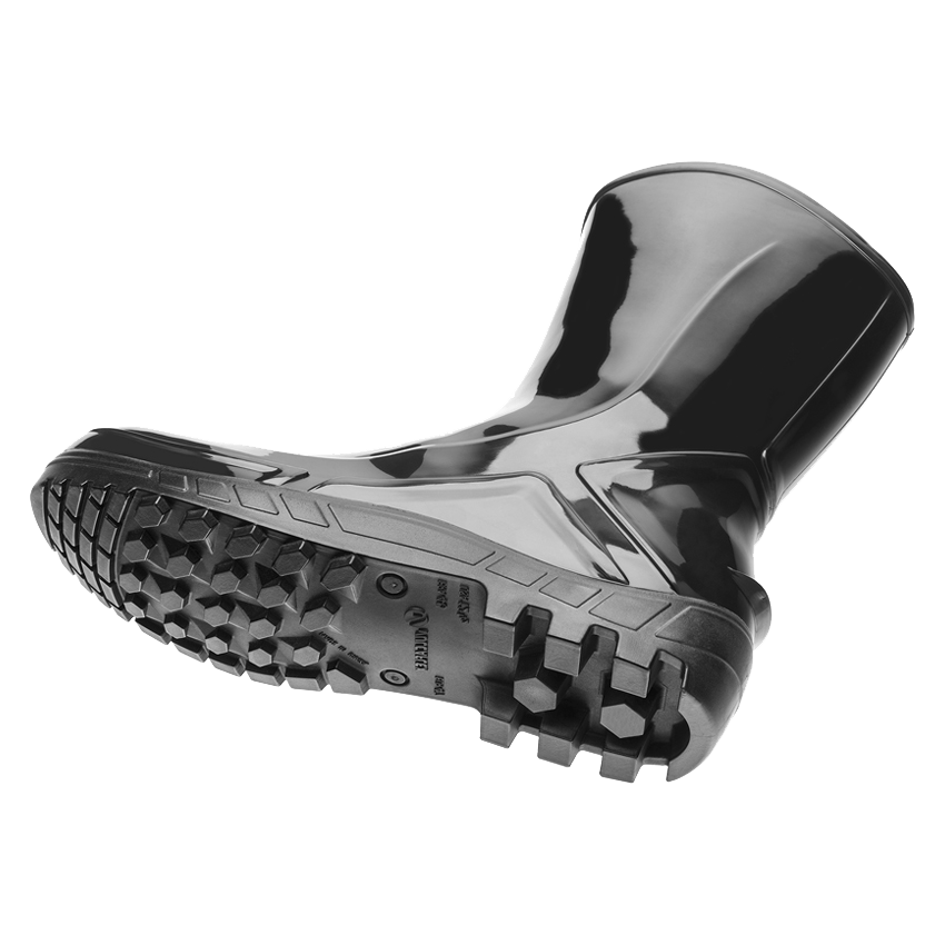 Bota de PVC (policloreto de polivinila) para profissionais de frigoríficos e abatedouros. Este calçado é de fácil higienização, tem cano médio (25cm), tipo C, classificação II e garante a máxima impermeabilidade. A bota tem opcional com forração interna e solado PVC full grip antiderrapante.