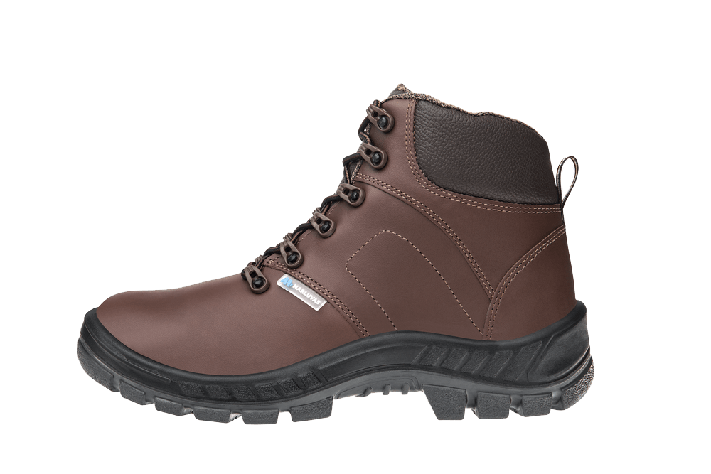 - Solado isolante em PU bi densidade, com sistema de absorção de impacto, injetado diretamente no cabedal.