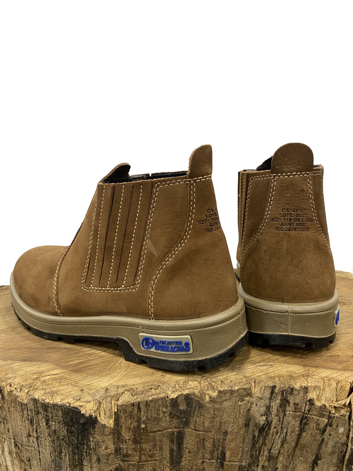 Confeccionada em couro nobuck, palmilhas antiestresse, costura reforçadas e com fechamento com cadarço para melhor ajuste. Forrada em tecido almofadado para proporcionar melhor conforto aos seus pés e com solado PU bi densidade e injetado direto no couro, gerando impermeabilização e leveza ao calçado.