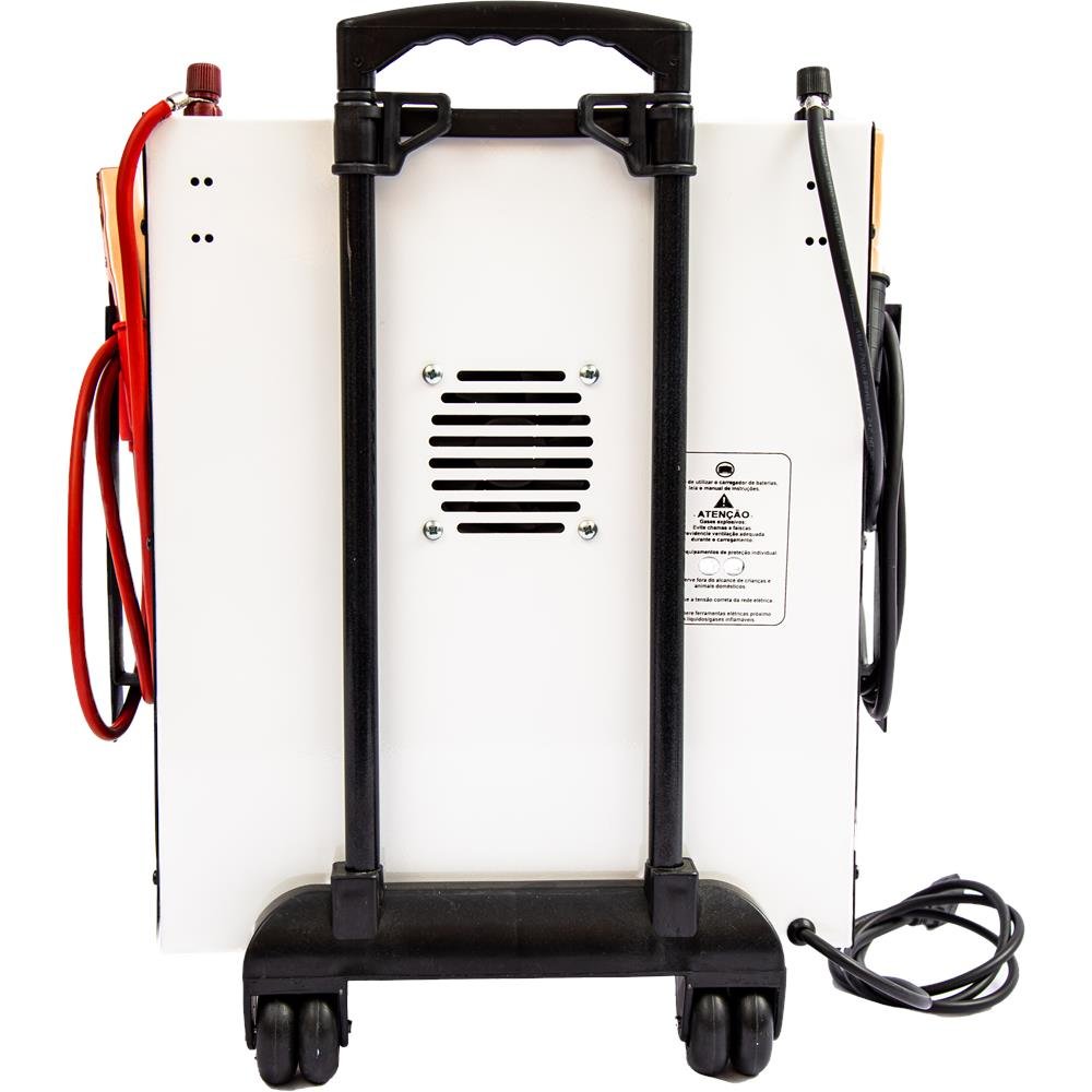 Com um design exclusivo, esse carregador possui uma alça retrátil e um carrinho de transporte, facilitando seu transporte e manuseio. Ele conta com um sistema automático de reativação de baterias e refrigeração forçada para garantir um desempenho confiável.