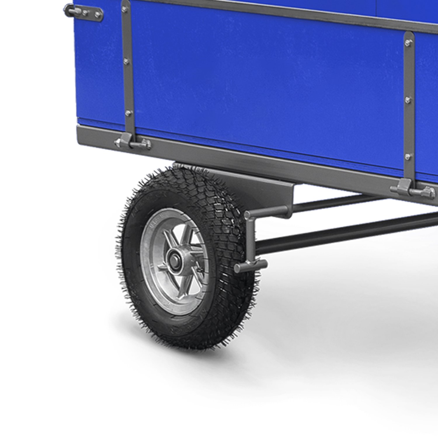 Com uma estrutura resistente e durável, esta carreta é equipada com freios acionados por um pedal e acoplamento através de pino, além de rodas/pneus de alumínio industrial R8″/3.50 4 lonas. Seu design preto elegante e moderno, com dimensões de 1,30m de comprimento, 0,90m de largura e 0,30m de altura, fazem desta carreta uma opção prática e funcional para aumentar a eficiência do seu trabalho.
