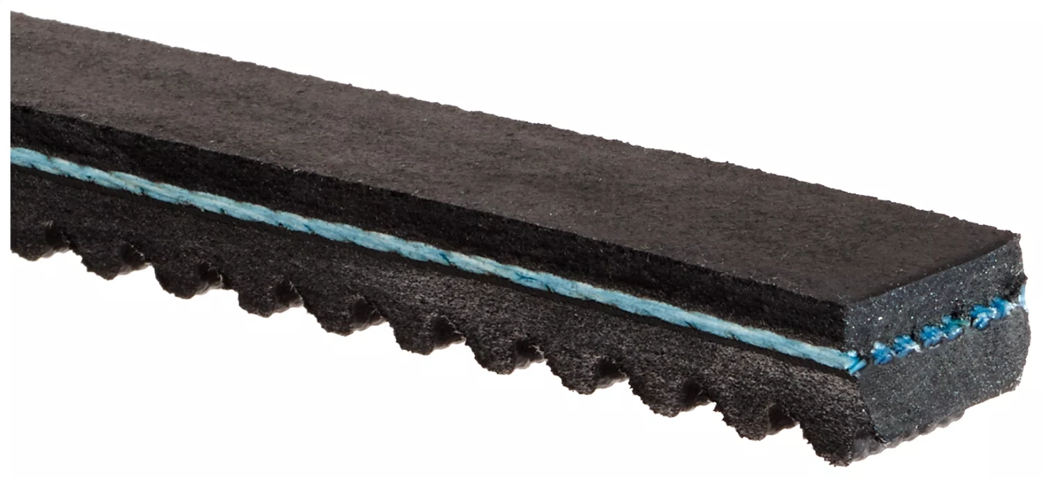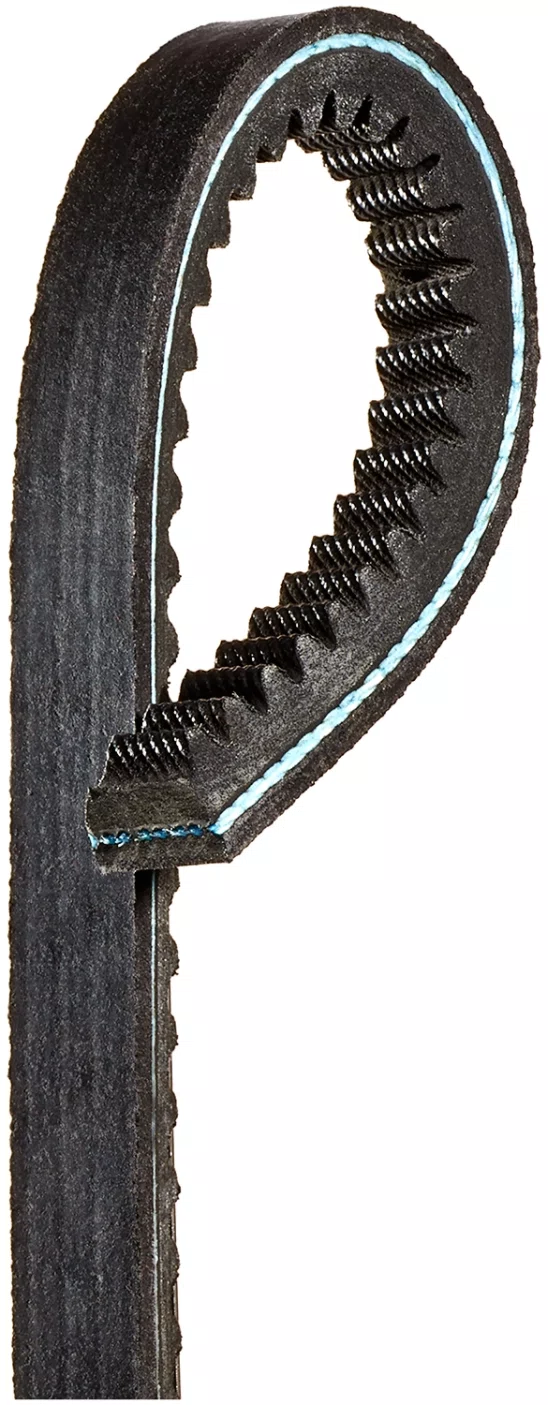 Perfil Clássico em V com Dentes Moldados: O design da correia apresenta dentes moldados durante a fabricação para aumentar a flexibilidade, tornando-a ideal para acionamentos com polias de diâmetro menor.