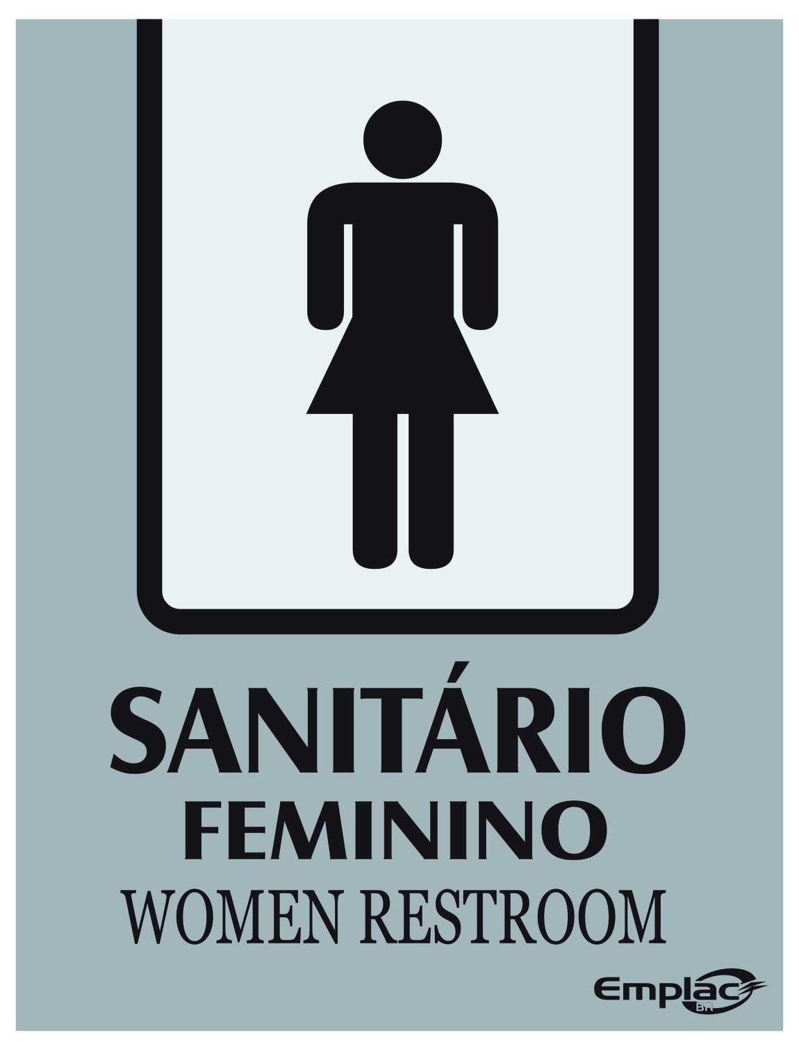 Perfeita para shoppings, empresas, aeroportos, escolas, clínicas e espaços públicos, a placa apresenta pictograma feminino com o texto “Sanitário Feminino” e, logo abaixo, a tradução “Women”, facilitando a compreensão por parte de todos os usuários.