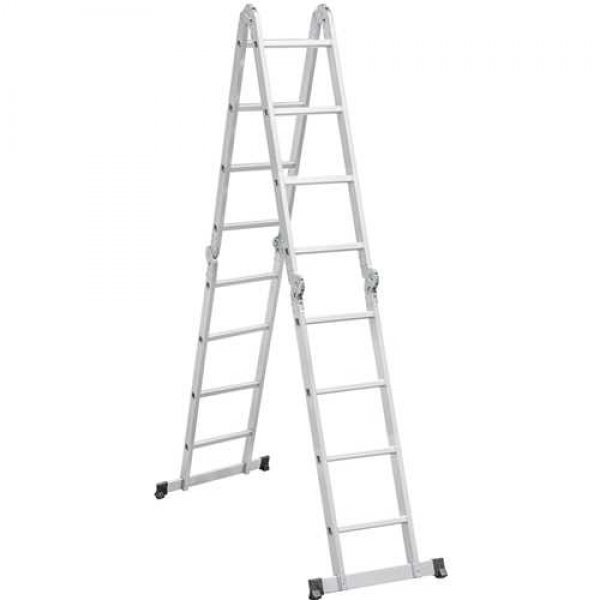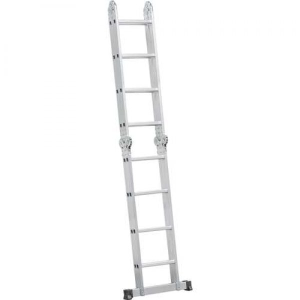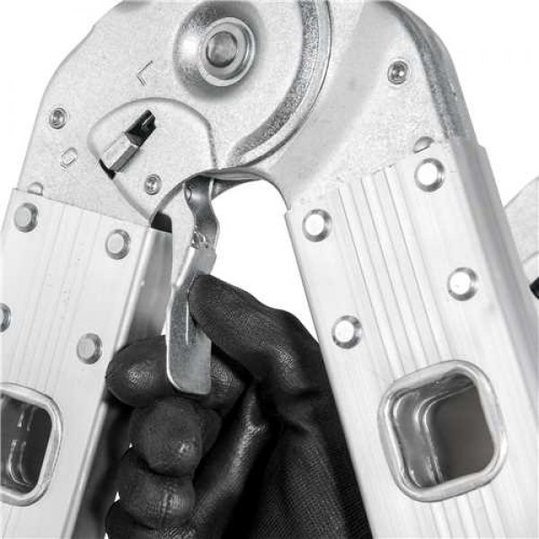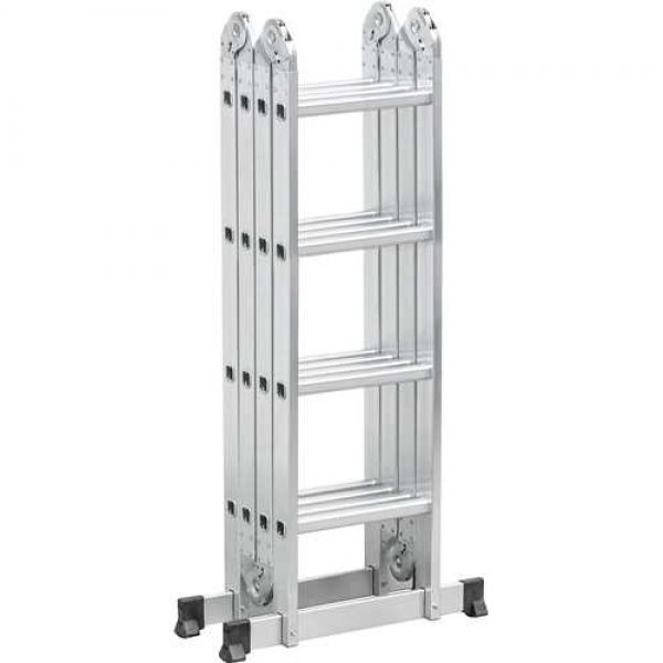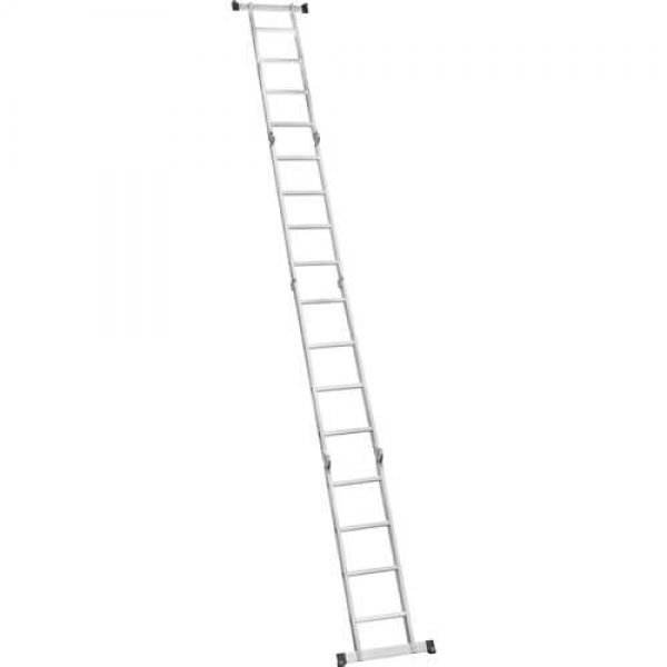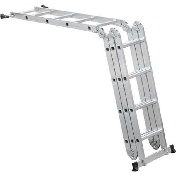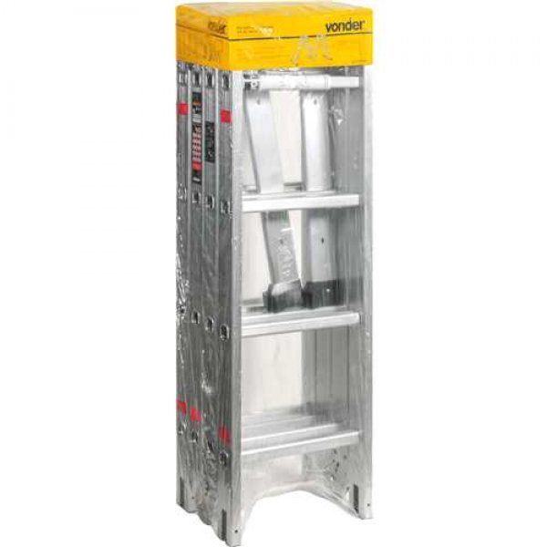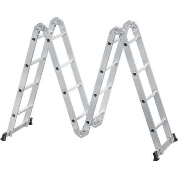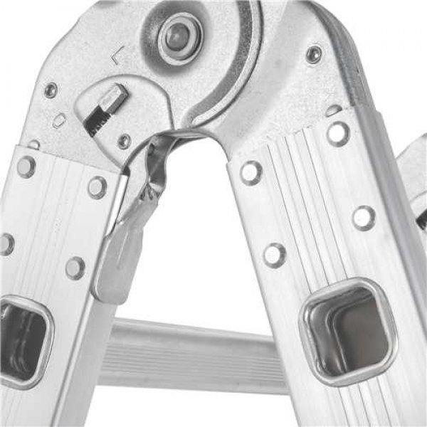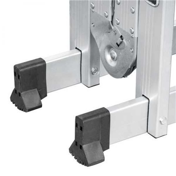 Permite o ajuste em várias posições, com sistema de articulação dividido em 4 partes com 4 degraus cada, totalizando 16 degraus. Possui sistema de trava em cada parte e sapatas antiderrapantes.
