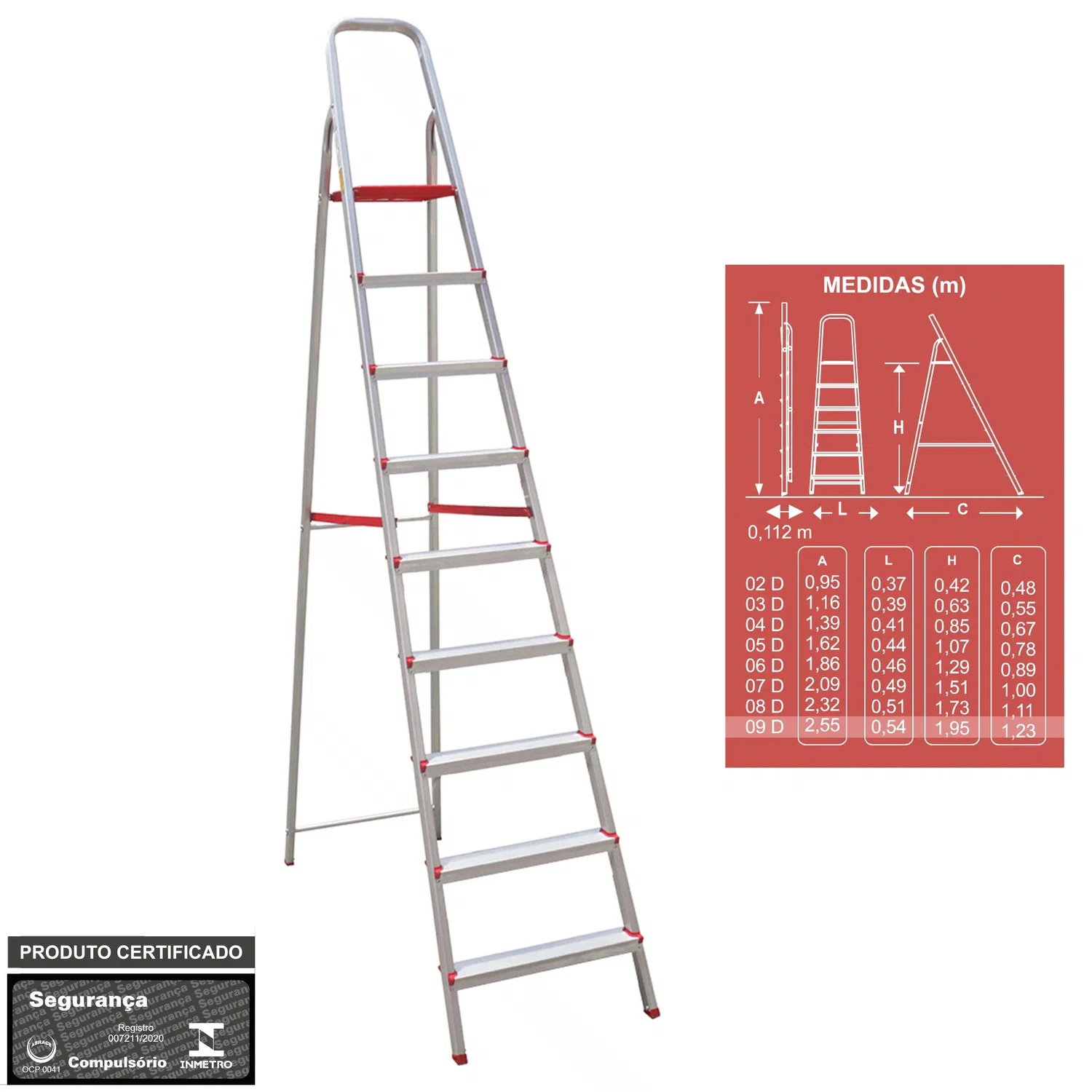 Escada Doméstica de Alumínio 9 Degraus Botafogo - Guia de Utilização