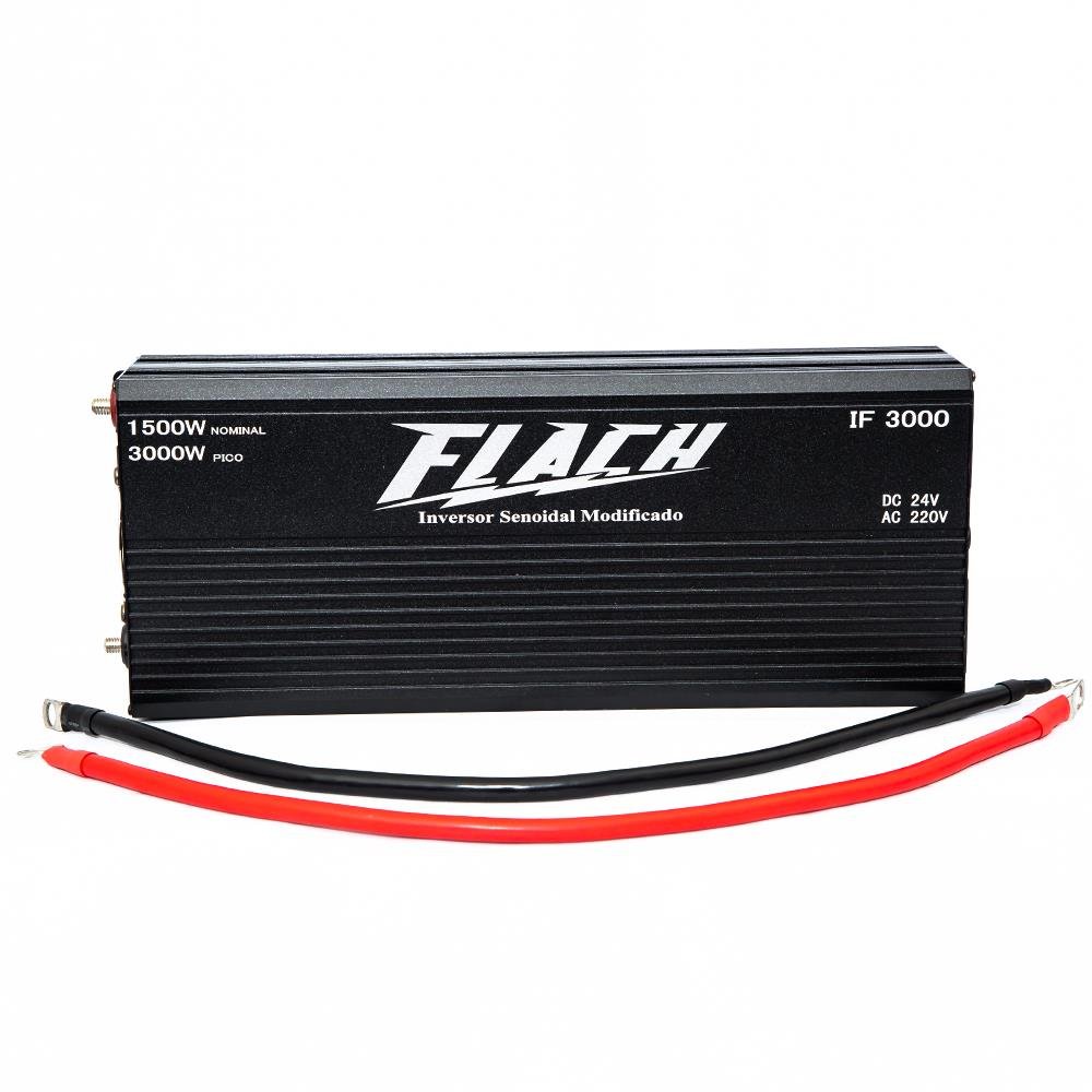 Apresentamos o Inversor de Tensão 12V/220V 1500W/3000W Flach, modelo Semi-Senoidal IF3000, um dispositivo de alta qualidade projetado para converter a tensão de 12V ou 24V de baterias em uma tensão de saída de 220V. Com esse inversor, você poderá utilizar dispositivos e equipamentos que requerem energia de 220V mesmo quando estiver em locais onde essa tensão não está disponível.