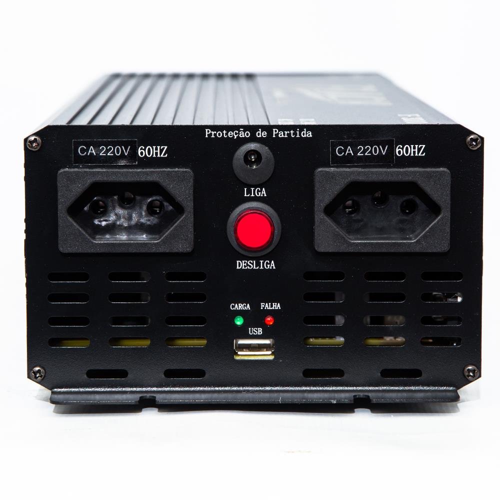 Para modelos abaixo de 1500W nominal, o inversor conta com a saída USB para carregamento de dispositivos móveis, proporcionando praticidade adicional. Já os modelos acima de 1500W nominal possuem uma saída para conexão remota, permitindo um controle mais conveniente e seguro.