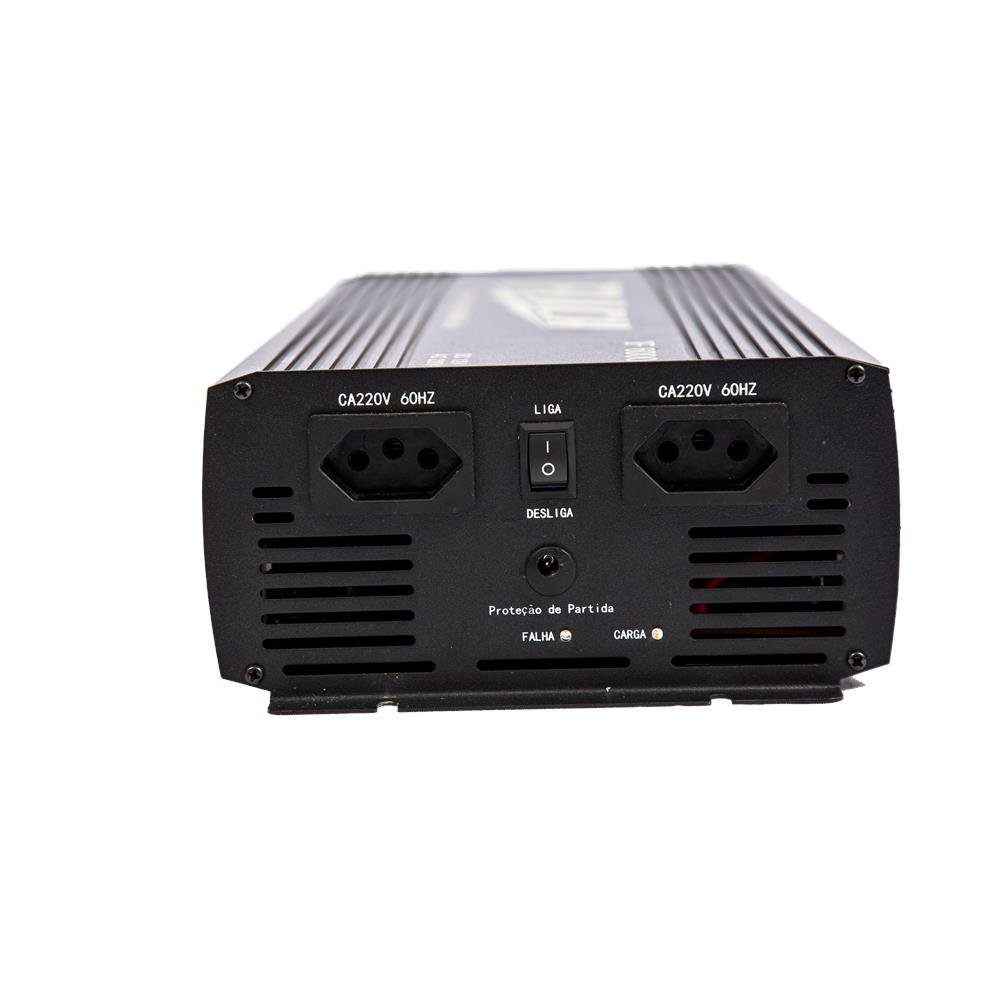 O inversor opera em uma faixa de tensão de saída de 220V com variação de +-5% e frequência de 60Hz com variação de +-3Hz. Ele pode ser utilizado em temperaturas de 0°C a +40°C e possui desligamento automático em caso de temperatura superior a 75°C.