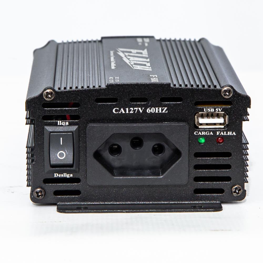 O Inversor de Tensão 12V/220V 300W/600W Flach possui uma potência nominal de 300W e um pico de potência de 600W, fornecendo energia suficiente para alimentar diversos aparelhos eletrônicos e eletrodomésticos de baixa potência. Ele está disponível nas opções de tensão de 12/220V e 12/127V, atendendo às diferentes necessidades dos usuários.