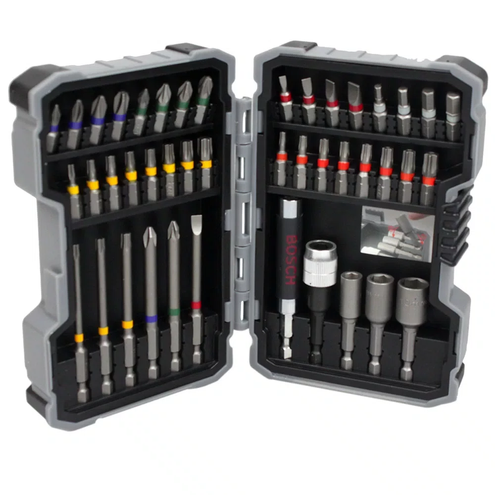 O Jogo de Bits Bosch é o kit completo para você ter em casa! Graças as suas 43 Peças de pontas variadas, tanto os pequenos consertos caseiro, que são mais simples, quanto para trabalhos profissionais como obras e oficinas, serão atendidos, garantindo qualidade e praticidade