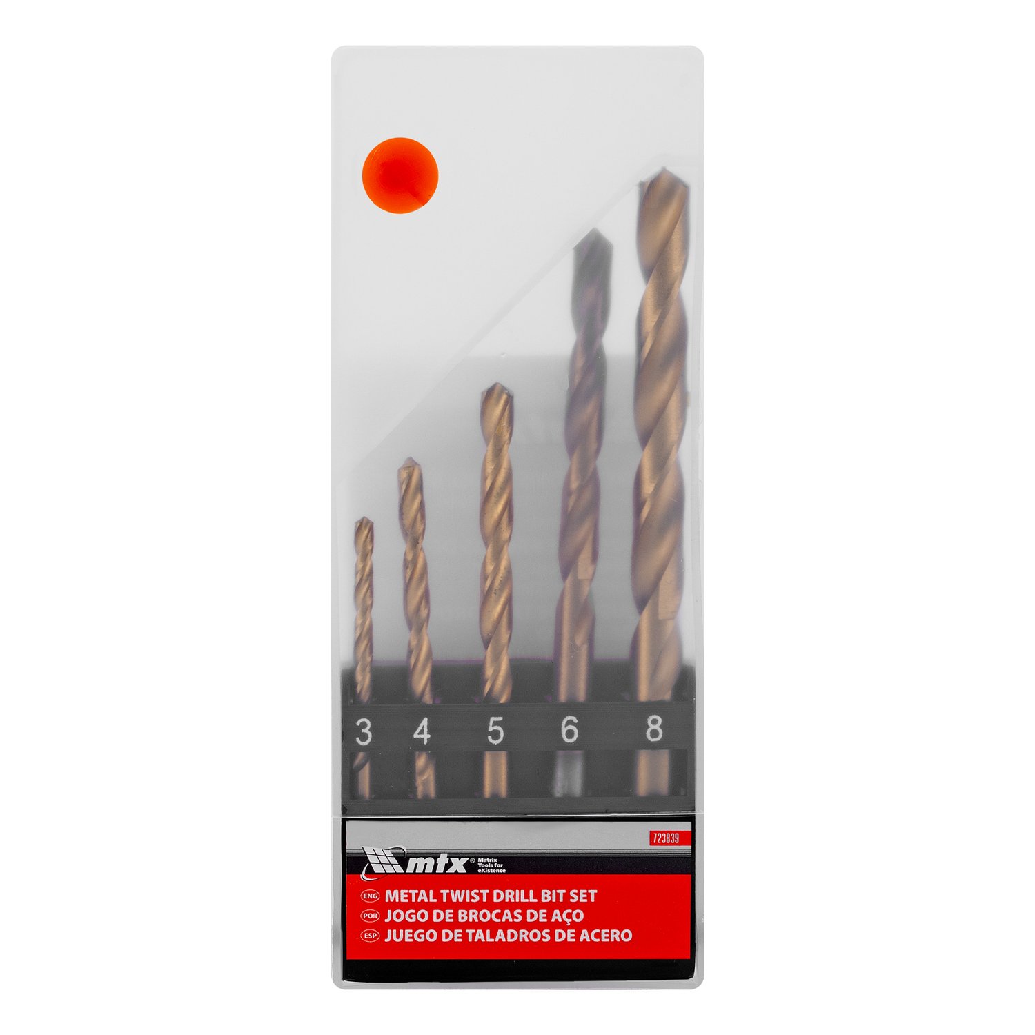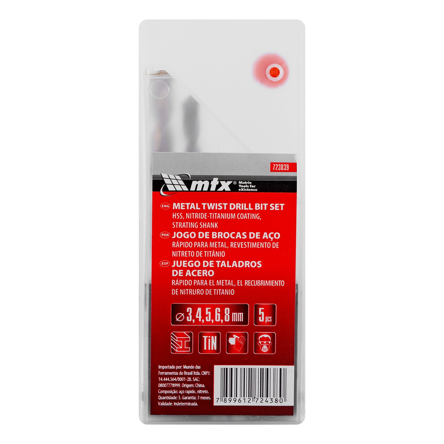 O Jogo MTX 723839 é composto por 5 brocas de aço rápido (HSS) com revestimento de nitreto de titânio, ideais para perfuração precisa em metais. Com hastes cilíndricas compatíveis com mandris padrão, inclui os tamanhos mais utilizados: 3, 4, 5, 6 e 8 mm.
