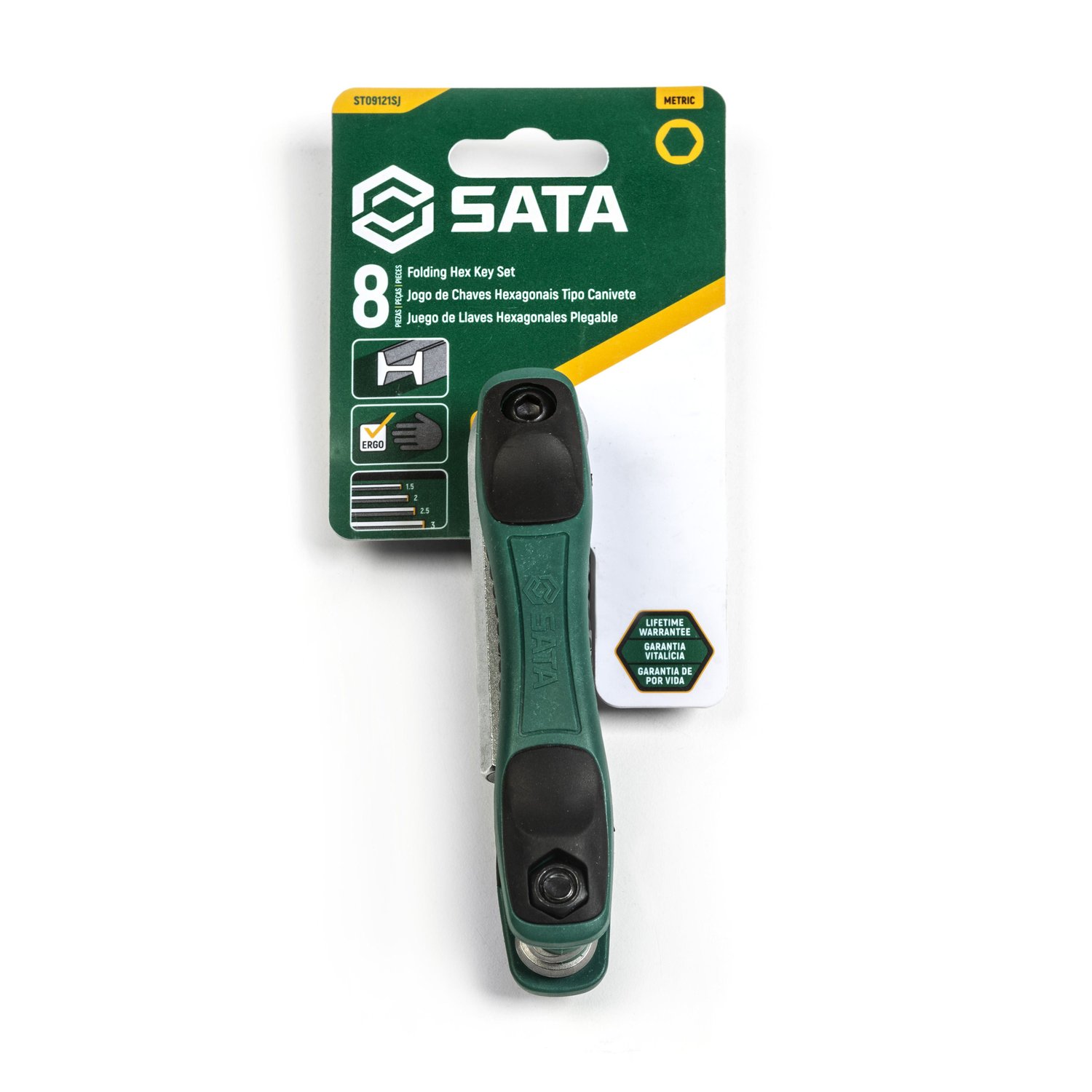 Nome Jogo De Chaves Hexagonais Tipo Canivete 8 Peças BRAND SATA UPC 7891645094546 COMPOSIÇÃO Composto por chaves: 1,5 - 2 - 2,5 - 3 - 4 - 5 - 6 - 8. MATERIAL Aço Cromo-Vanádio (Cr-V) e plástico ALTURA 5 cm LARGURA (CM) 22 cm COMPRIMENTO (CM) 11.3 cm PESO 0.21 kg
