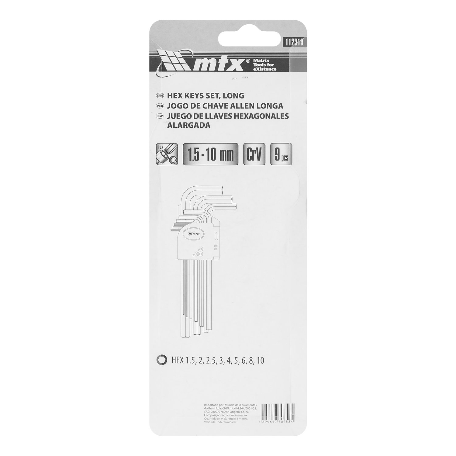 O Jogo de Chaves Allen MTX 112289 oferece uma seleção versátil e resistente de 9 peças com haste longa, ideais para montagem e desmontagem de parafusos com perfil hexagonal (HEX). Produzidas em aço cromo-vanádio (CrV) com acabamento oxidado, garantem durabilidade, resistência à corrosão e desempenho confiável em aplicações profissionais ou domésticas.