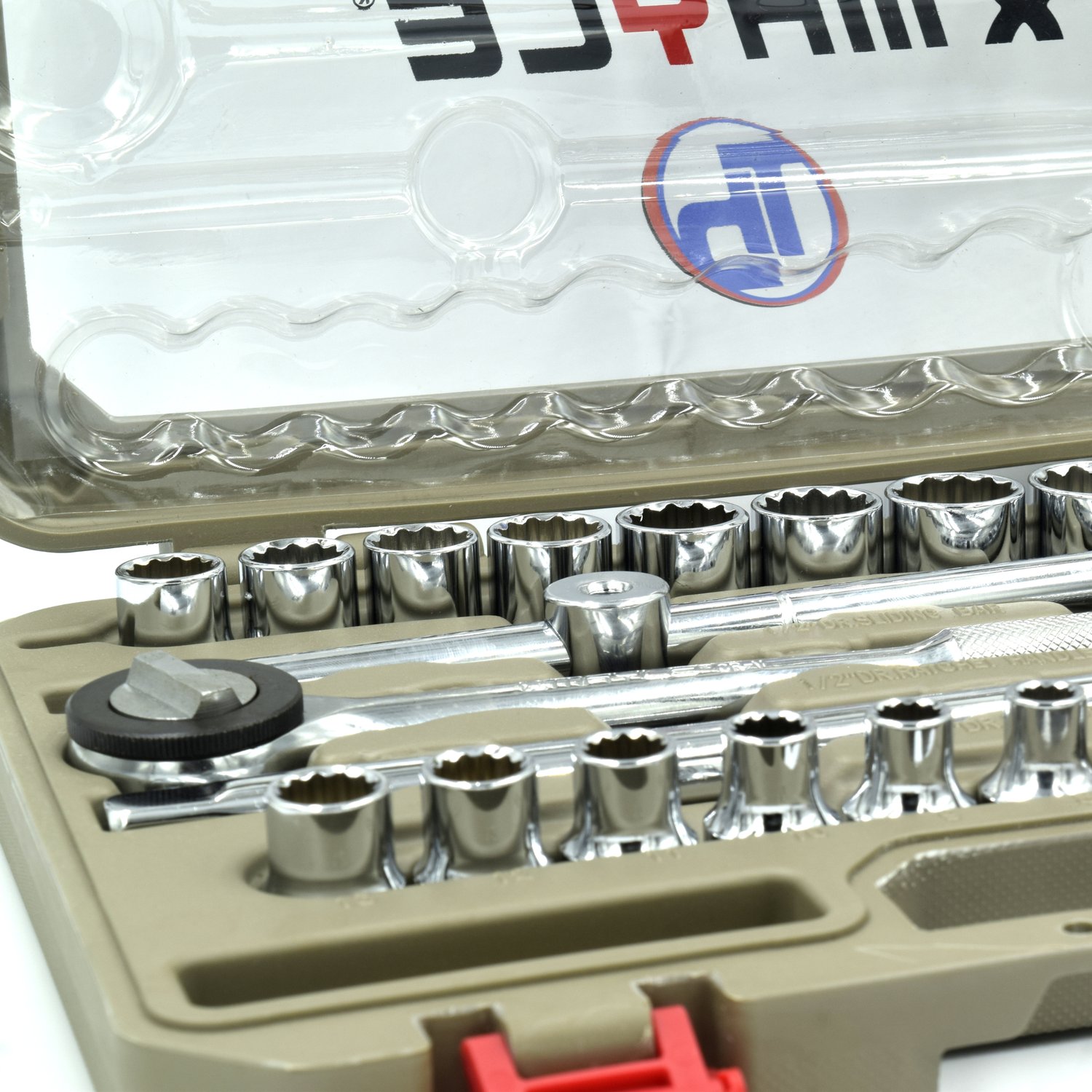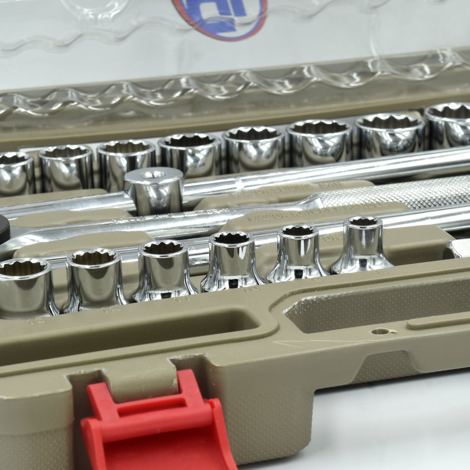 Composto por 23 peças com encaixe de 1/2", sendo: