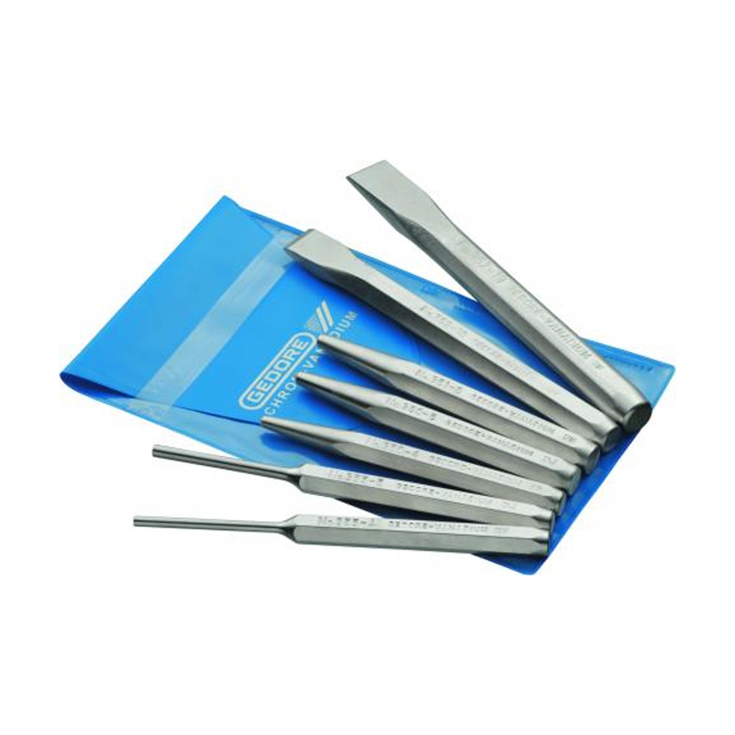 O jogo de ferramentas talhadeiras, punções e sacapinos da marca Gedore é um conjunto de 7 peças essenciais para trabalhos manuais de mecânica, construção e reparação de equipamentos. Essas ferramentas são projetadas para cortar, perfurar e marcar materiais duros, como metais e plásticos.