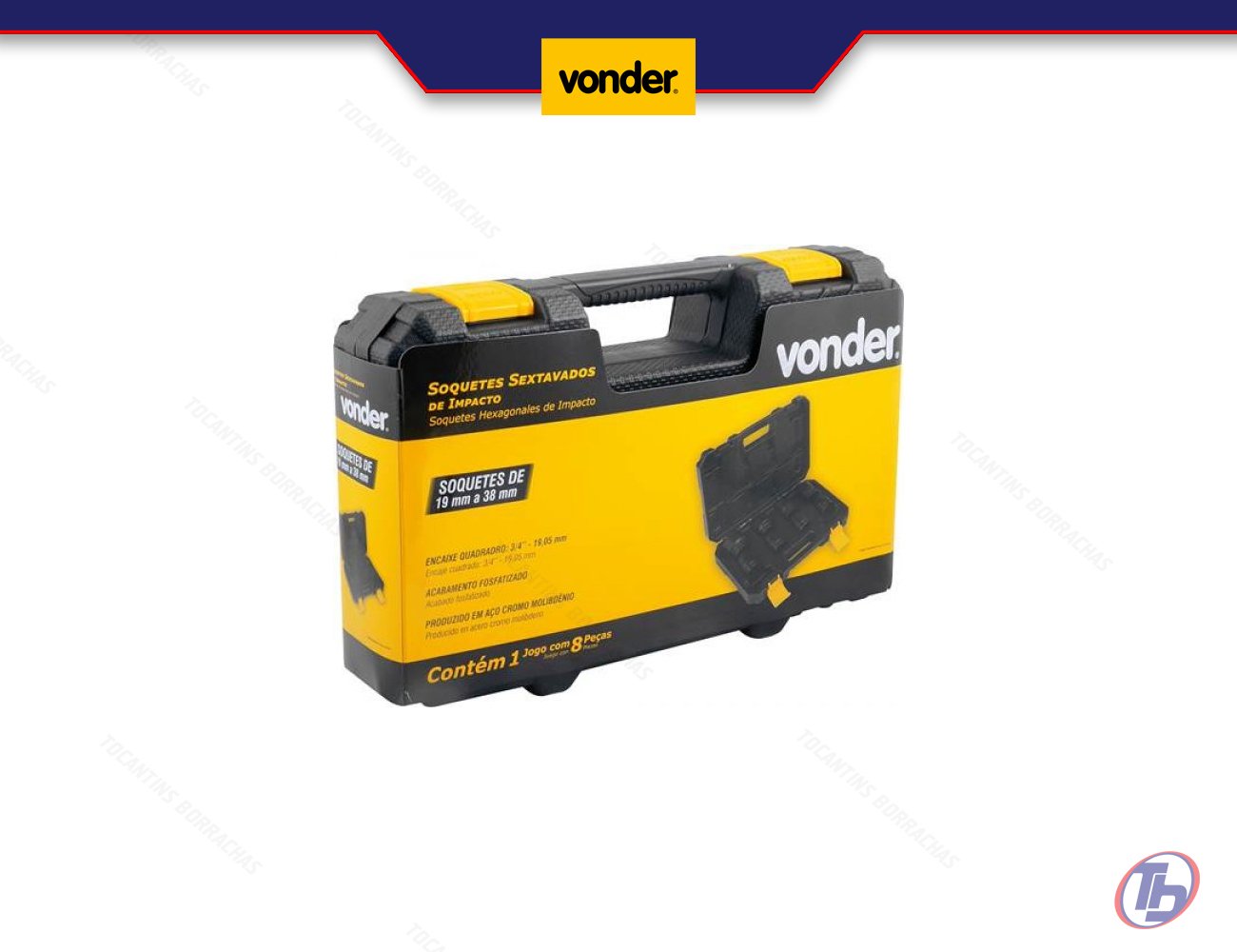 ᵻ Jogo de soquetes de impacto sextavados, encaixe de 3/4", 19,0 mm a 38,0 mm, com 8 peças, VONDER.