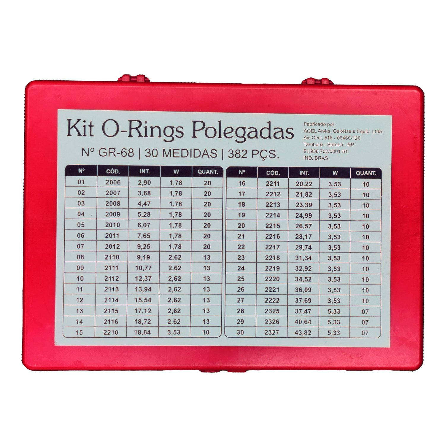 Kit O-ring Polegada Maleta Plástico 382 pcs Agel