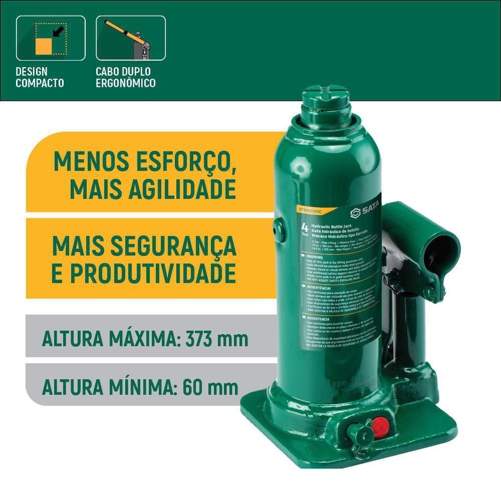 Macaco Hidráulico Garrafa 4 Toneladas Sata