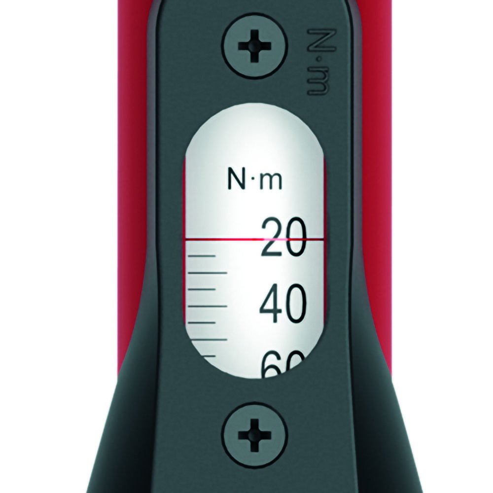 Essa versão do torqueímetro possui um punho giratório para ajuste do torque, garantindo facilidade de uso. Sua precisão de disparo é de +/- 3% em relação ao valor ajustado na escala, assegurando resultados confiáveis. Além disso, o torqueímetro é ajustável e possui um encaixe quadrado com função de catraca integrada. A escala é equipada com uma lupa para leitura clara em N·m, além de uma escala secundária para ajuste preciso.