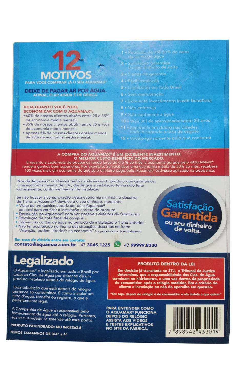 Válvula Bloqueadora de Ar Residencial 3/4" Aquamax Para economizar água